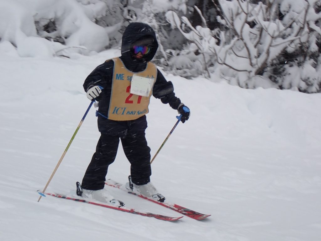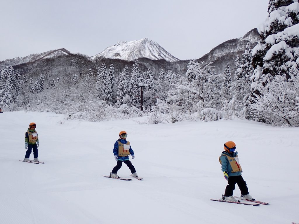 初めてスキーに挑戦する子どもたちを対象に、毎年1月5日〜7日に初心者向けのスキーキャンプを開催しています。まずは、道具の名称の確認からはじまり、靴や板の履き方から練習します。妙高青少年自然の家の「つどいの広場」で降りしきり雪の中、片足だけ板を履いて滑りながら歩く練習もしました。2日目からは「休暇村ルンルンスキー場」でのレッスンです。斜面に人工芝を敷き、滑らないようにして自分で登って1人で緩斜面を滑り降りる練習や、止まる練習を繰り返し、最終日には、ゲレンデの上から1人で滑り降りてくることができるまでになりました。最終日は抜けるような青空の下でのレッスンとなりましたが、「まだ帰りたくない。スキーをもっとやりたい!」と泣きだす幼児がいました。また、小学生の参加者では、「将来はスキー選手になりたい!」とみんなの前で宣言する子もいて、2泊3日の短い時間でしたが、充実したキャンプだったことが感じられました。